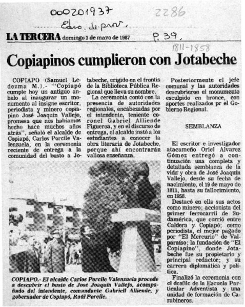 Copiapinos cumplieron con Jotabeche [artículo] Samuel Ledezma M.