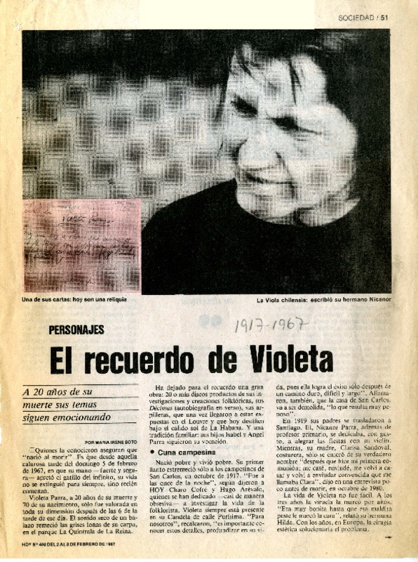 El recuerdo de Violeta [artículo] María Irene Soto.