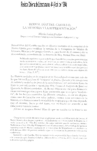 Bernal Díaz del Castillo, la memoria y la representación [artículo] María Luisa Fischer.