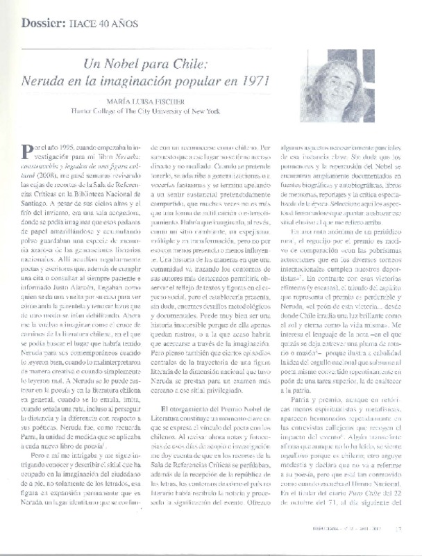 Navegaciones y anclajes del antinerudismo [artículo] María Luisa Fischer.