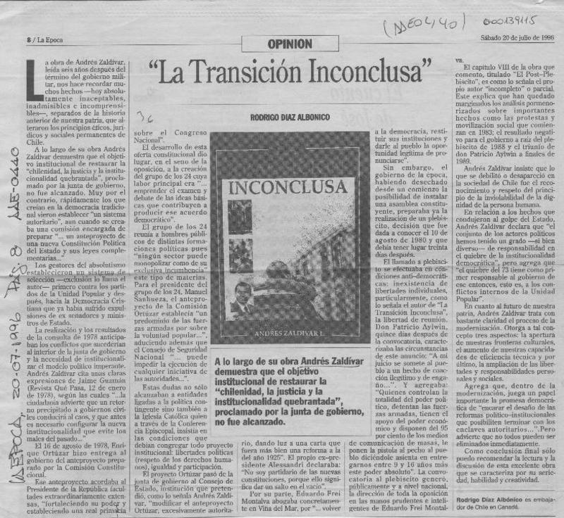 "La transición inconclusa" [artículo] Rodrigo Díaz Albónico.