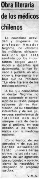 "Obra literaria de los médicos chilenos" [artículo] V. M. A.