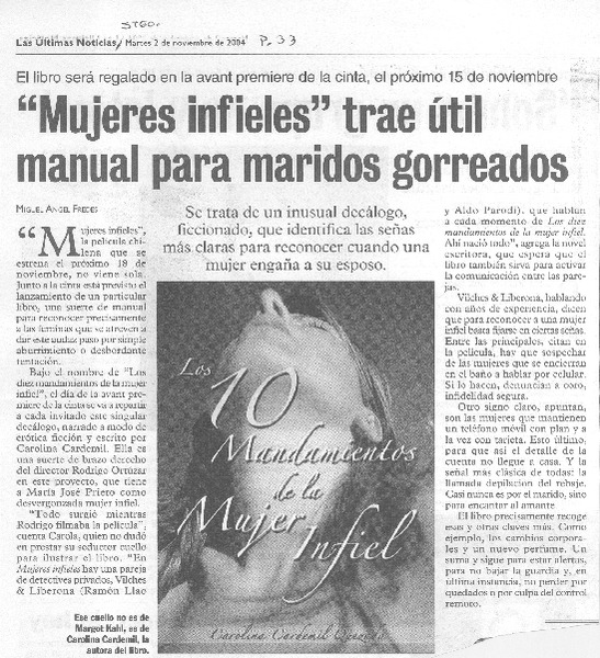 "Mujeres infieles" trae útil manual para maridos gorreados [artículo] Miguel Ángel Fredes.