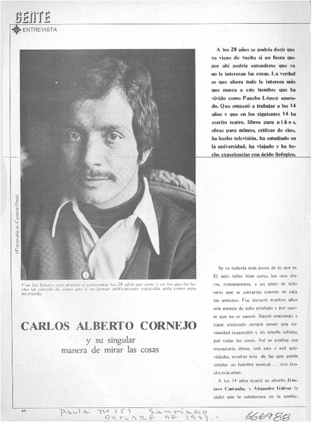 Carlos Alberto Cornejo y su singular manera de mirar las cosas: [entrevista] [artículo] M. S.