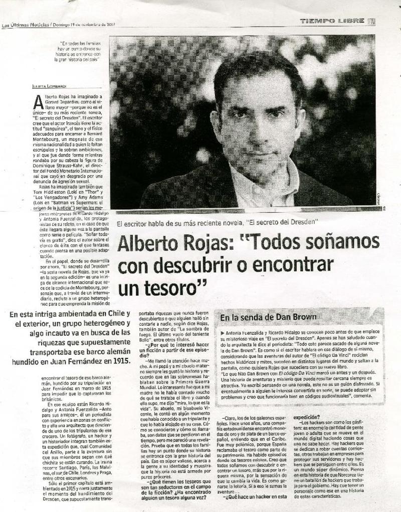 Autores chilenos - Entrevistas - Rojas, Alberto - "El secreto del Dresden"
