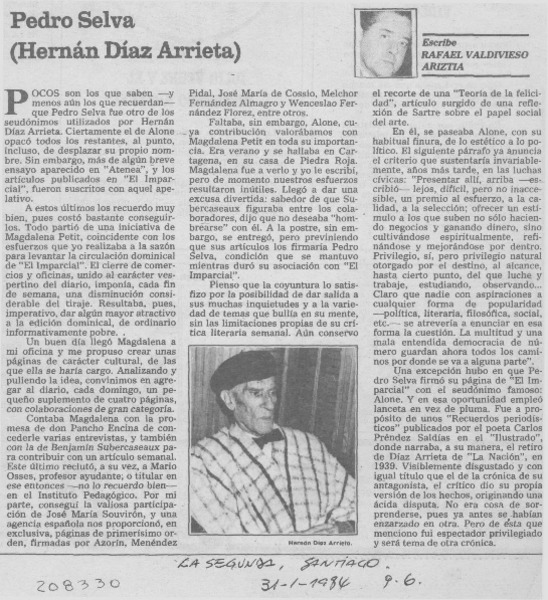 Pedro Selva (Hernán Dıaz Arrieta) [artículo] Rafael Valdivieso Ariztía.