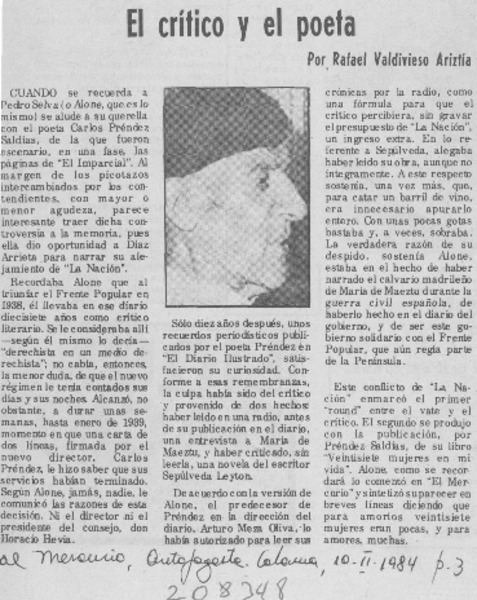 El crítico y el poeta [artículo] Rafael Valdivieso Ariztía.