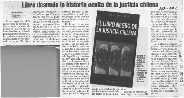Libro desnuda la historia oculta de la justicia chilena [artículo] Roberto Amaro.
