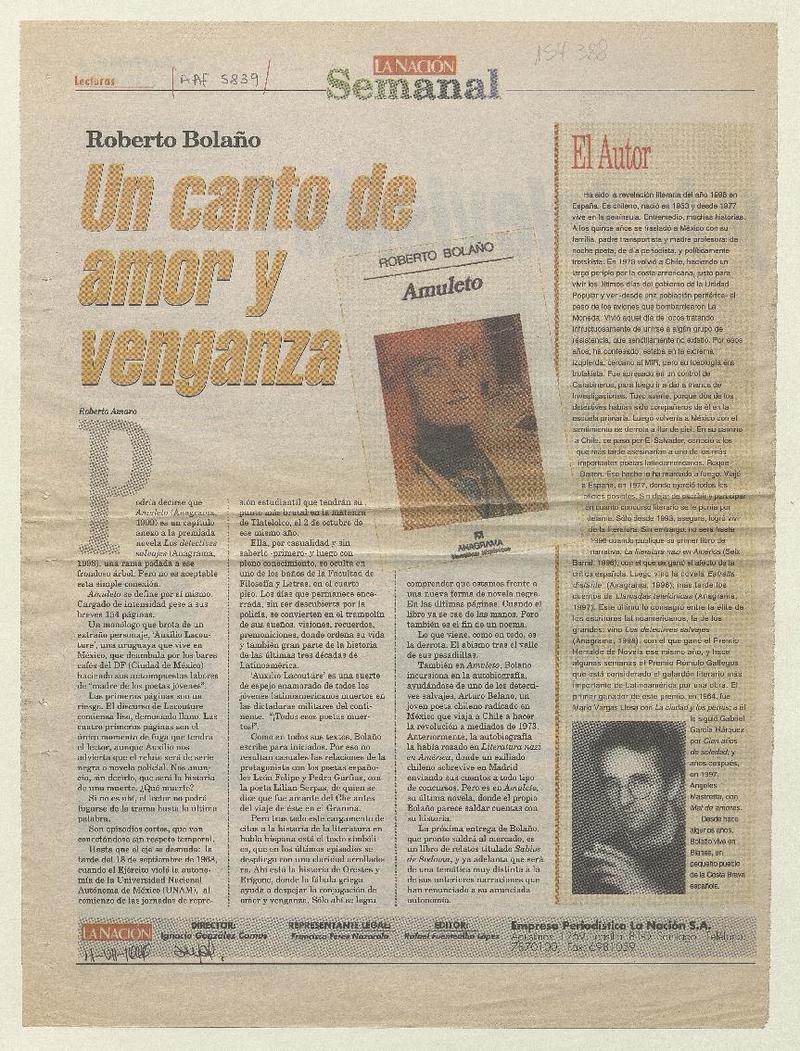 Un canto de amor y venganza [artículo] Roberto Amaro.