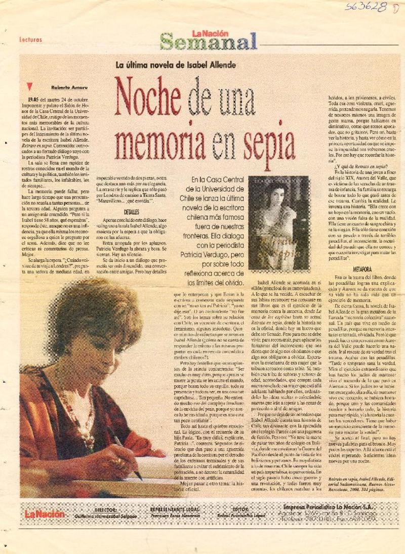 Noche de una memoria en sepia [artículo] Roberto Amaro.