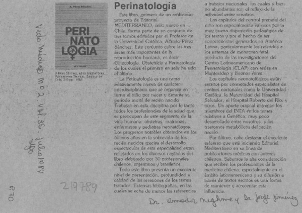 "Perinatología" [artículo] Amador Neghme [y] Jorge Jiménez.