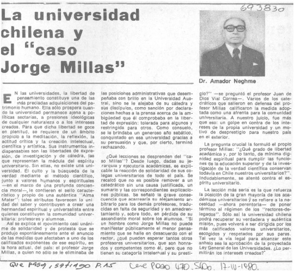 La universidad chilena y el "caso Jorge Millas" [artículo] Amador Neghme.