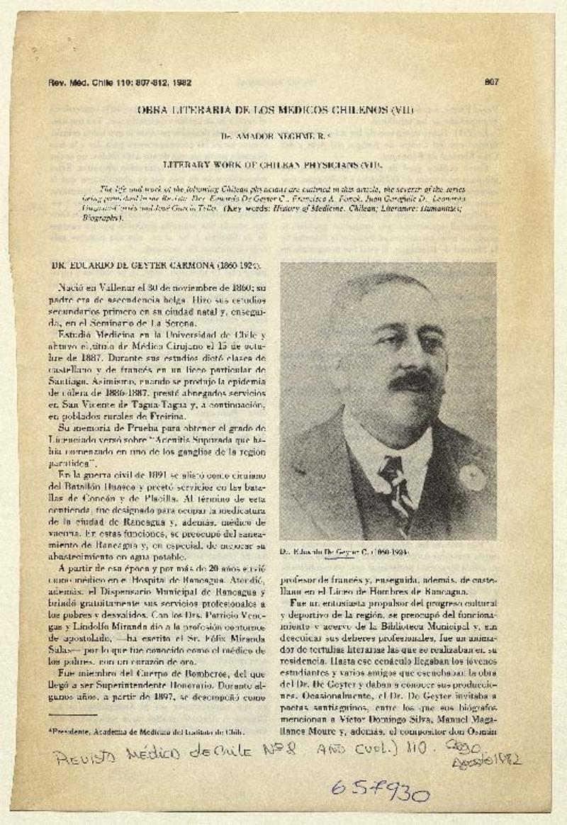 Autores chilenos - De Geyter Carmona, Eduardo