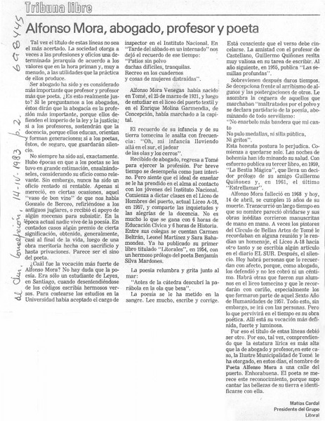 Alfonso Mora, abogado, profesor y poeta [artículo] Matías Cardal.