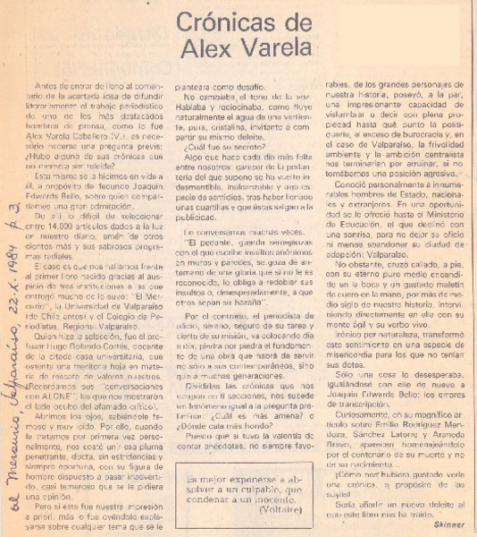 "Crónicas del viejo Valparaíso" [artículo] Skinner.