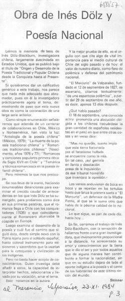 Obra de Inés Dölz y poesía nacional [artículo] Skinner.