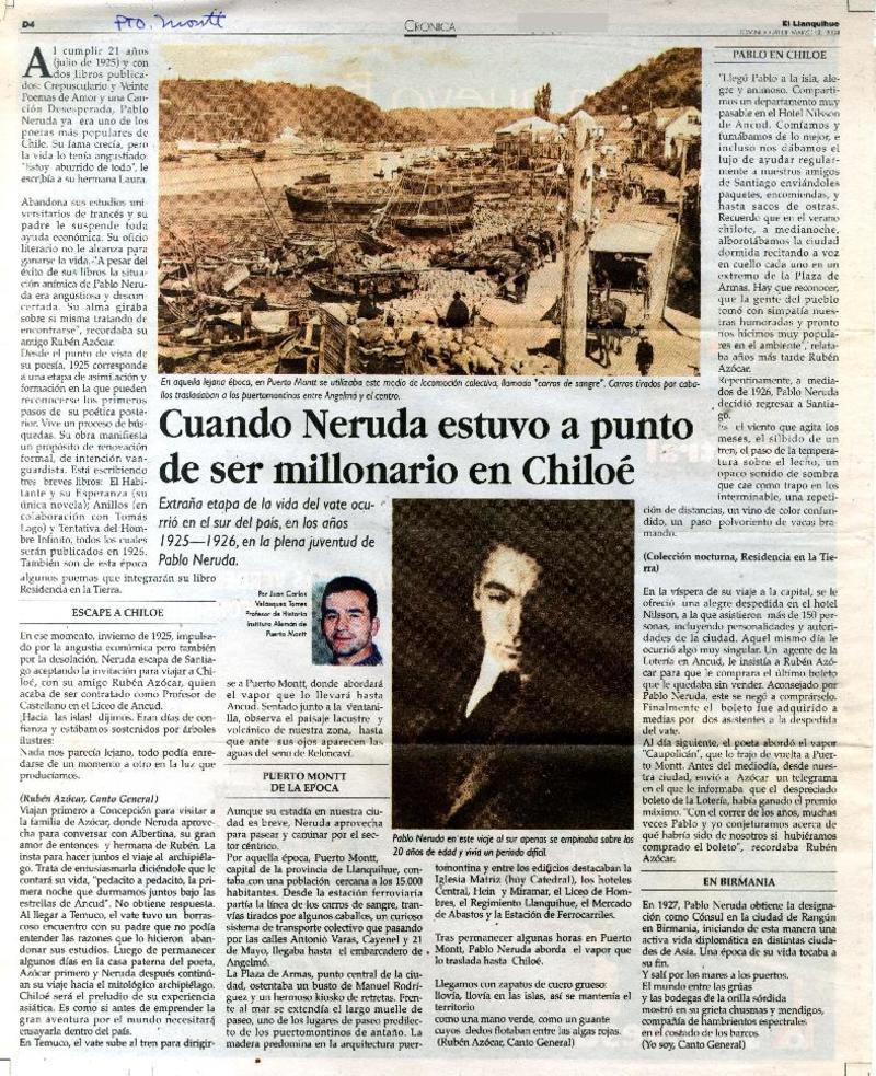 Neruda en Puerto Montt [artículo] Juan C. Velásquez Torres.