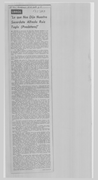 Autores chilenos - Lo que nos dijo nuestro sacerdote - Ruiz-Tagle, Alfredo - El Sur (Concepción, Chile)--