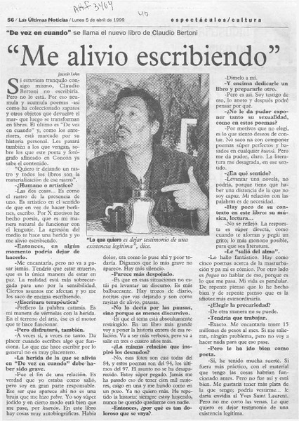 "Si me muriera hoy en la noche, estaría muy contento" (entrevista) [artículo] Jazmín Lolas.