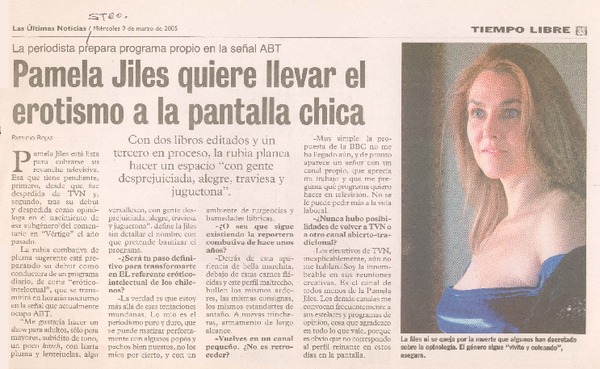 Pamela Jiles quiere llevar el erotismo a la pantalla chica [artículo] Patricio Rojas.