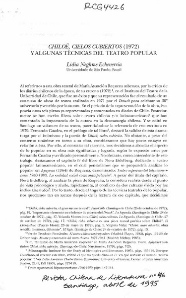 Chiloé, cielos cubiertos (1972) y algunas técnicas del teatro popular [artículo] Lidia Neghme Echeverría.