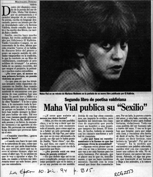 Maha Vial publica su "Sexilio" [artículo] Magdalena Donoso.