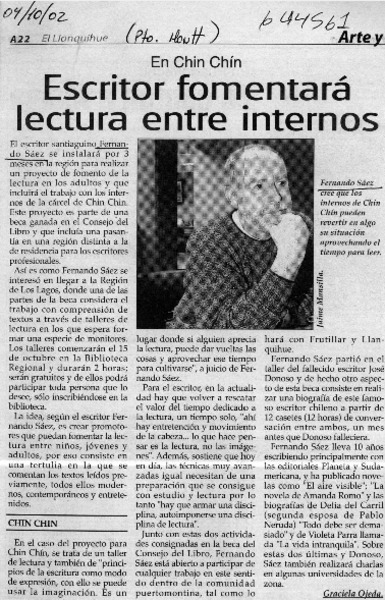 Escritor fomentará lectura entre internos [artículo] Graciela Ojeda