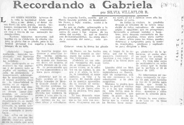 Recordando a Gabriela [artículo] Silvia Villaflor R.