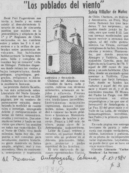 "Los poblados del viento" [artículo] Sylvia Villafor de Muñoz.