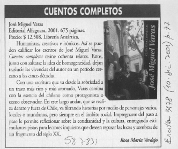 Autores chilenos - Varas Morel, José Miguel - Cuentos completos