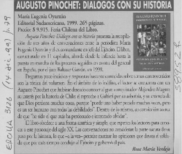 Augusto Pinochet, diálogos con su historia [artículo] Maria Rosa Verdejo