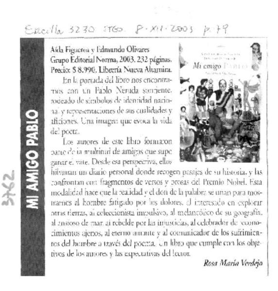 Autores chilenos - Neruda, Pablo - Figueroa, Aída - Olivares Briones, Edmundo - Mi amigo Pablo