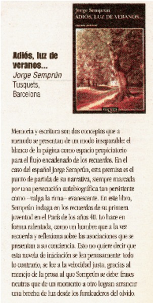 Autores chilenos - Semprún, Jorge - Adiós, luz de veranos