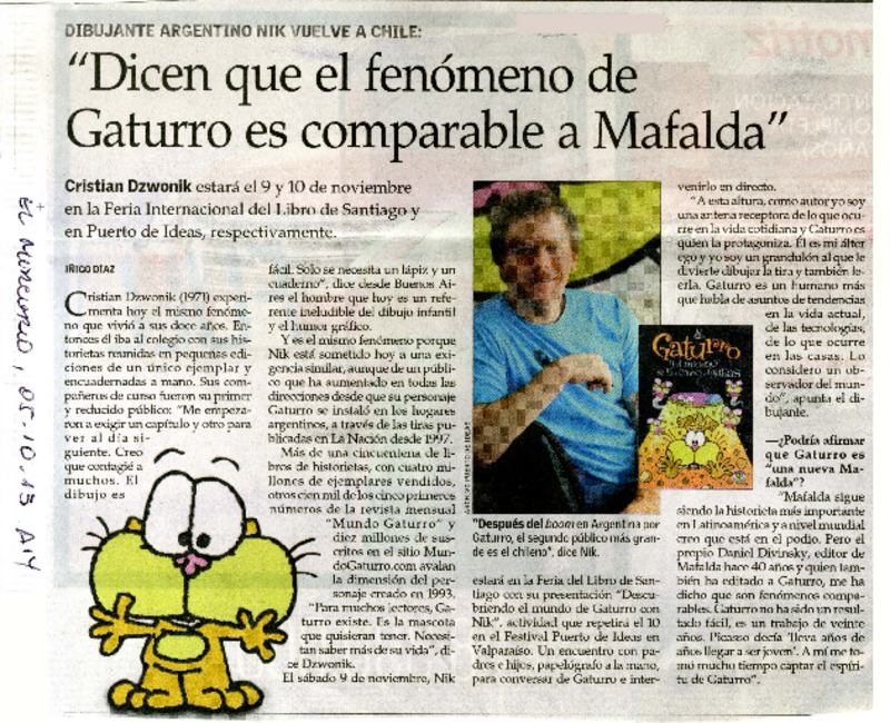 "Dicen que el fenómeno de Gaturro es comparable a Mafalda" [artículo] Iñigo Dïaz