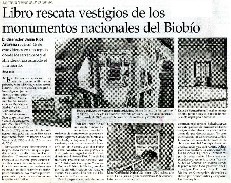 Libro rescata vestigios de los monumentos nacionales del Biobìo [artículo] Iñigo Dìaz.