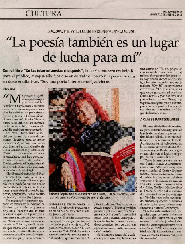 Shlomit Baytelman recupera poemarios "la poesía es también un lugar para mí" [artículo] : Iñigo Díaz ;[fotografía de] Macarena Pérez.