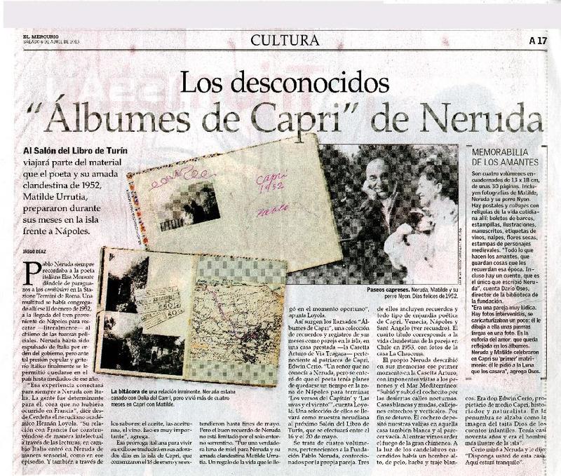 Los desconocidos "Álbumes de Capri" de Neruda [artículo] Iñigo Díaz