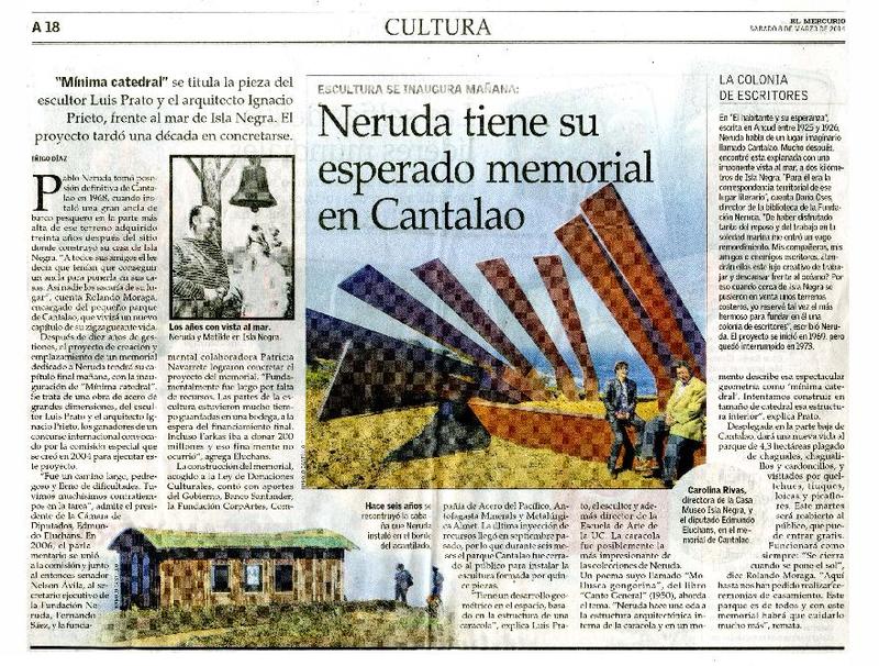 Neruda tiene su esperado memorial en Cantalao [artículo] Iñigo Díaz