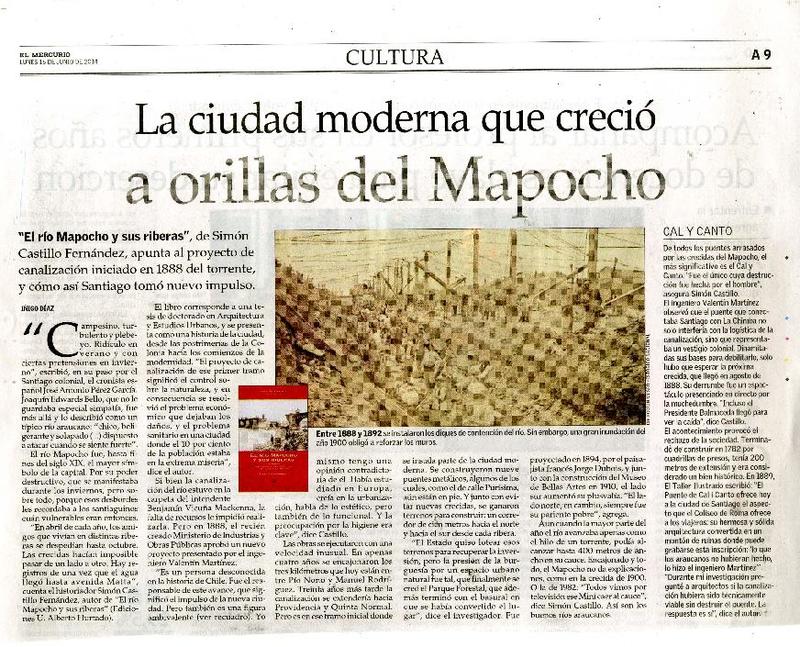 La ciudad moderna que creció a orillas del Mapocho [artículo] Iñigo Díaz