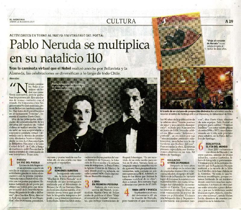Pablo Neruda se multiplica en su natalicio 110 [artículo] Iñigo Díaz