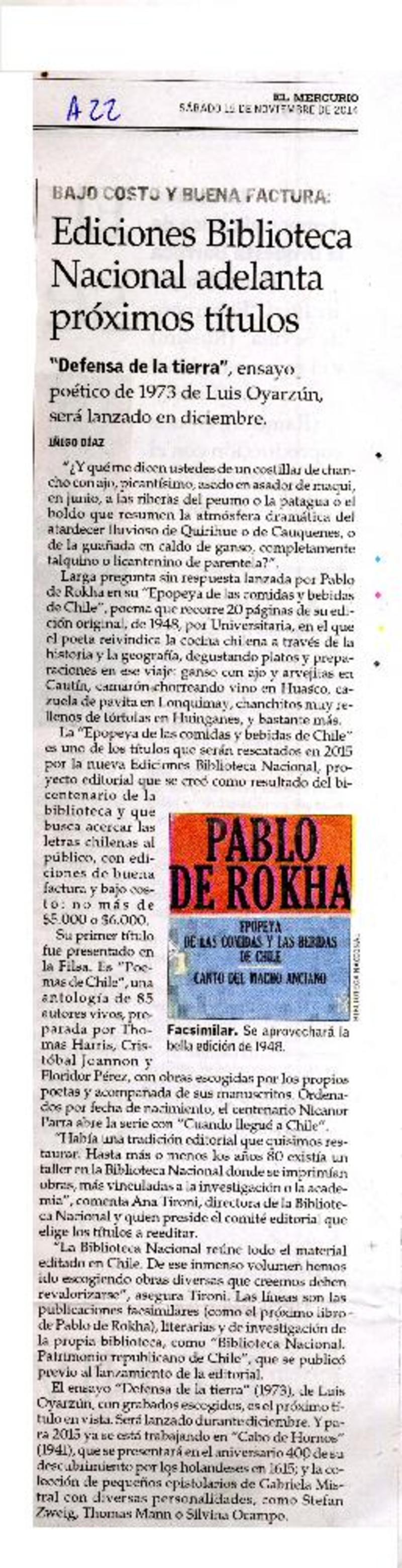 Edficiones Biblioteca Nacional adelanta proximos títulos [artículo] Iñigo Díaz