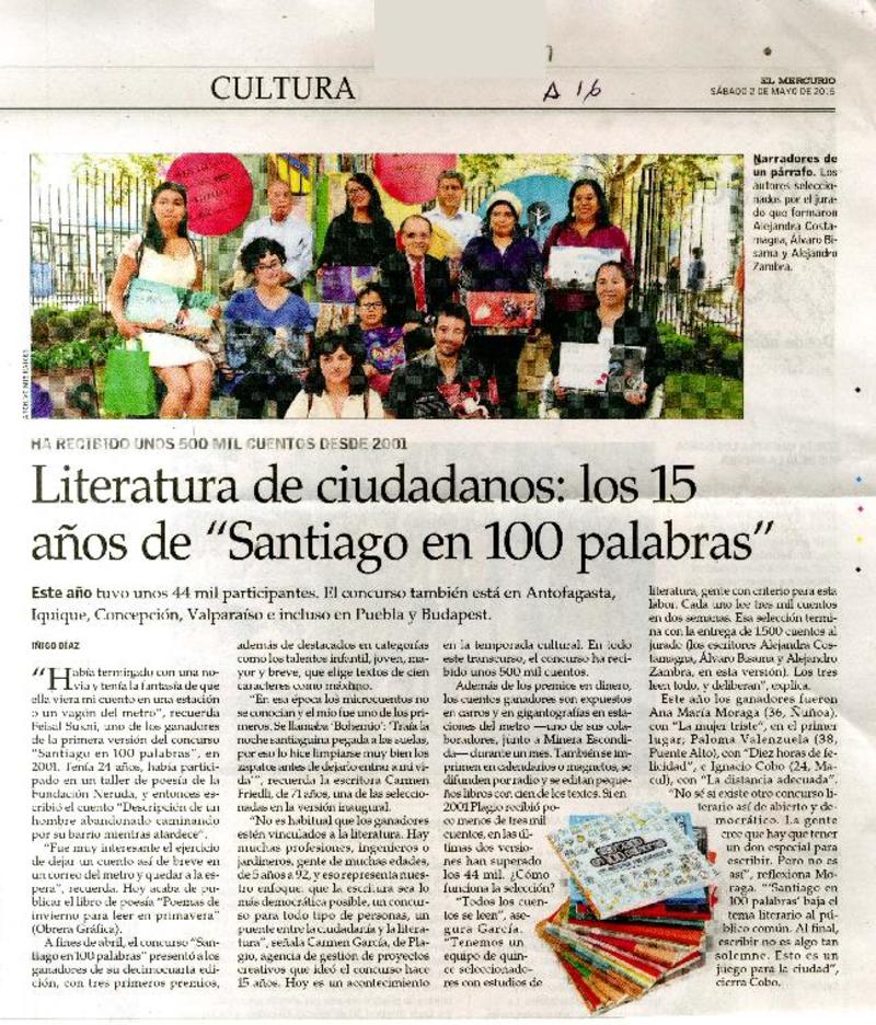 Literatura de ciudadanos: los 15 años de "Santiago en 100 palabras" [artículo] Iñigo Díaz.