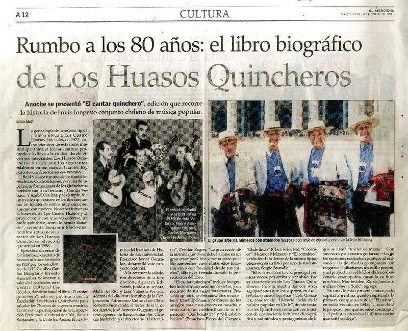 Rumbo a los 80 años: el libro biográfico de Los Huasos Quincheros [artículo] Iñigo Díaz.