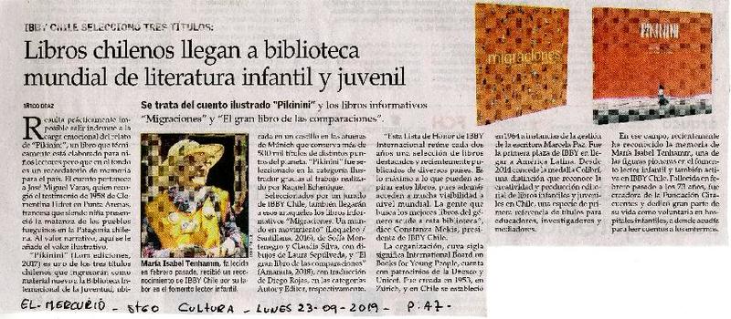 Libros chilenos llegan a biblioteca mundial de literatura infantil y juvenil [artículo] Iñigo Díaz.