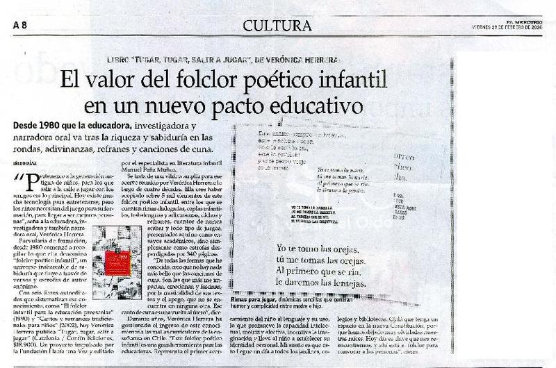 El valor del folclor poético infantil en un nuevo pacto educativo [artículo] Iñigo Díaz.