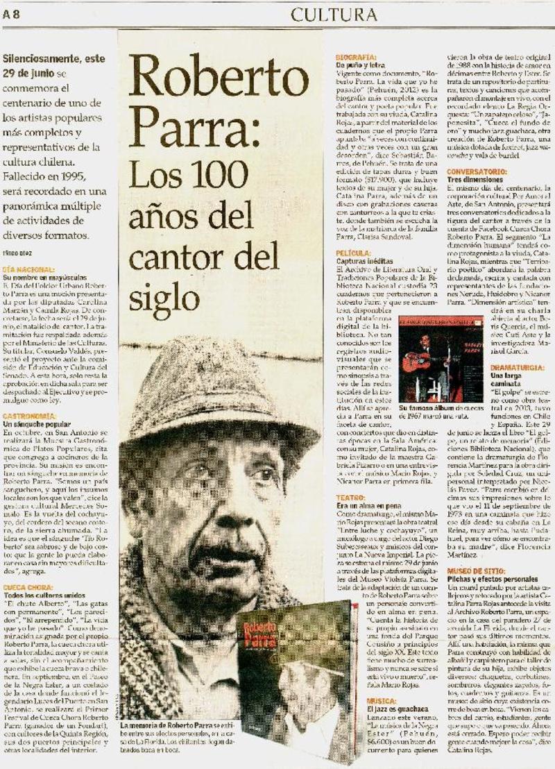 Roberto Parra : los 100 años del cantor del siglo [artículo] Iñigo Díaz.