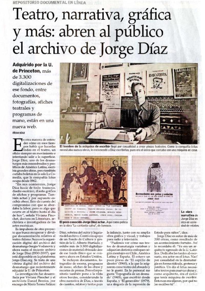 Teatro, narrativa, gráfica y más : abren al público el archivo de Jorge Díaz [artículo] Iñigo Díaz.