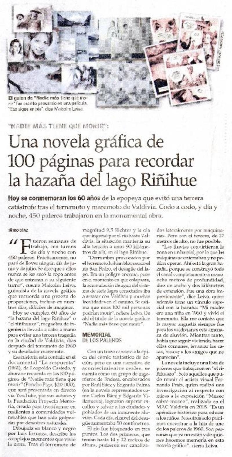 Una novela gráfica de 100 páginas para recordar la hazaña del Lago Riñihue [artículo] Iñigo Diaz.