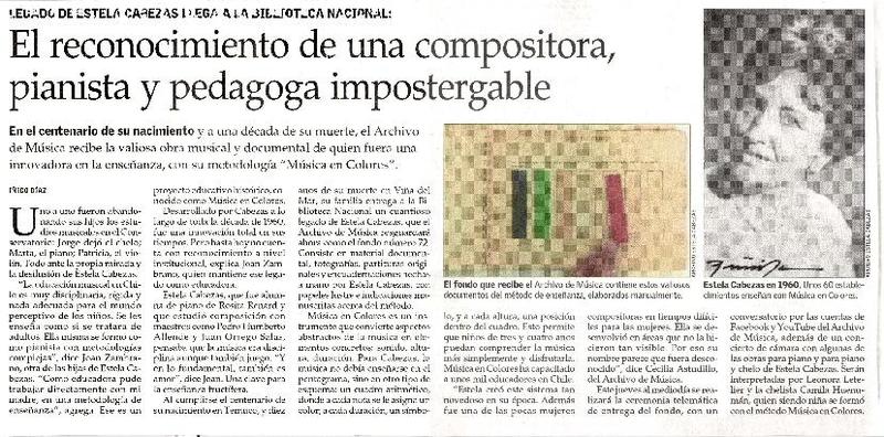 El reconocimiento de una compositora, pianista y pedagoga impostergable [artículo] Iñigo Diaz.