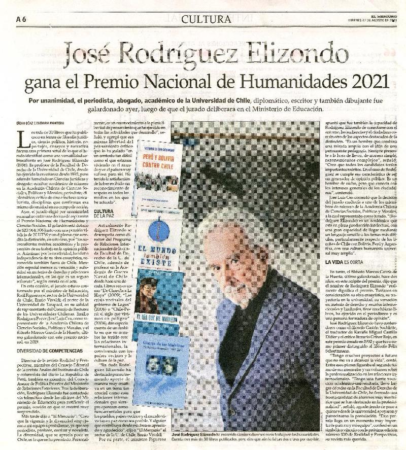 José Rodríguez Elizondo gana el Premio Nacional de Humanidades 2021 [artículo] Iñigo Díaz e Isidora Montero.